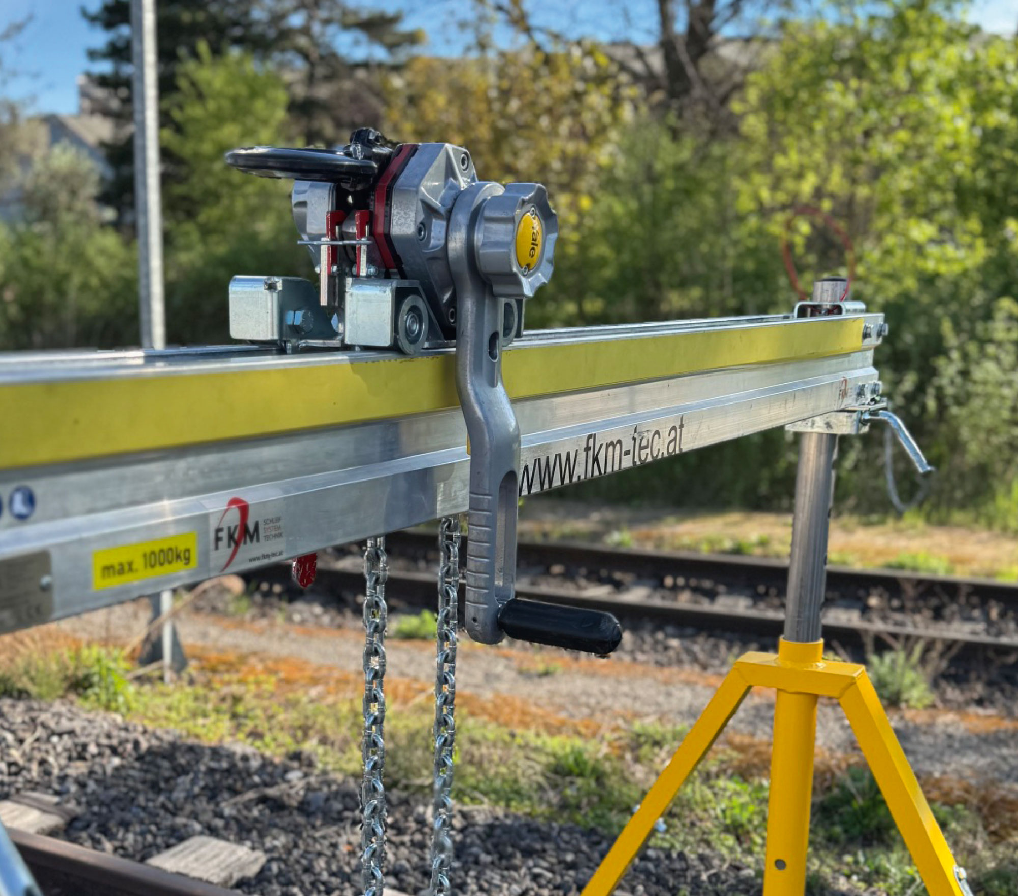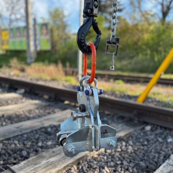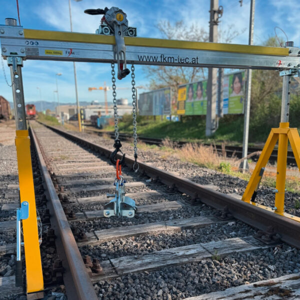 Zum sicheren Anheben und Umsetzen von Großweichenteilen und Schienen.